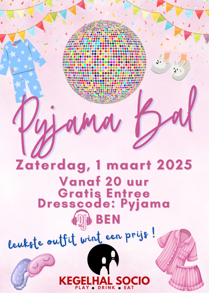 Mis het niet! 1 maart vanaf 20 uur, Pyjama Bal @ Kegelhal Socio!